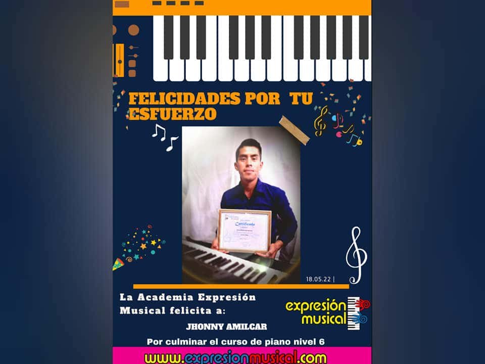 Me siento muy motivado con los cursos. Actualmente estoy estudiando el curso de Piano Acelerado y he avanzado rápido en muy poco tiempo. El profesor nos ayuda a alcanzar nuestros objetivos con un programa estructurado y moderno. ¡Gracias Expresión Musical!