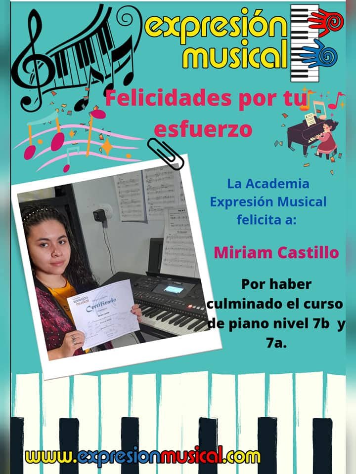 Aprender piano en Expresión Musical ha sido lo mejor que he experimentado en clases a distancia. Tienen recursos especiales para alumnos desde principiantes hasta avanzados. Además, con la Membresía Premium estoy incursionando en guitarra y ukelele también. Academia 100% recomendada.